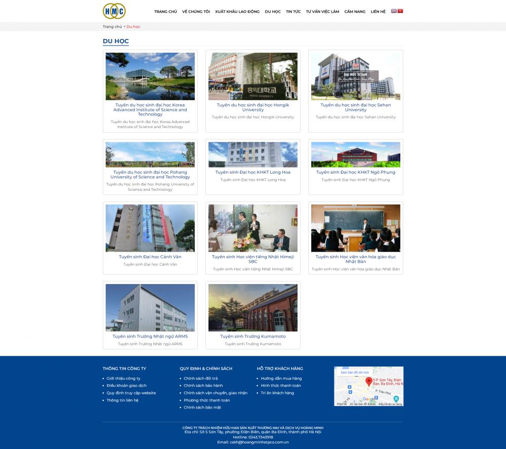 Công ty trách nhiệm hữu hạn sản xuất thương mại và dịch vụ Hoàng Minh chuyên hoạt động về lĩnh vực cung ứng Thực tập sinh kỹ năng ( Tu nghiệp sinh ); Chuyên gia; Lao động lành nghề và phổ thông … đi làm việc ở nước ngoài theo hợp đồng…